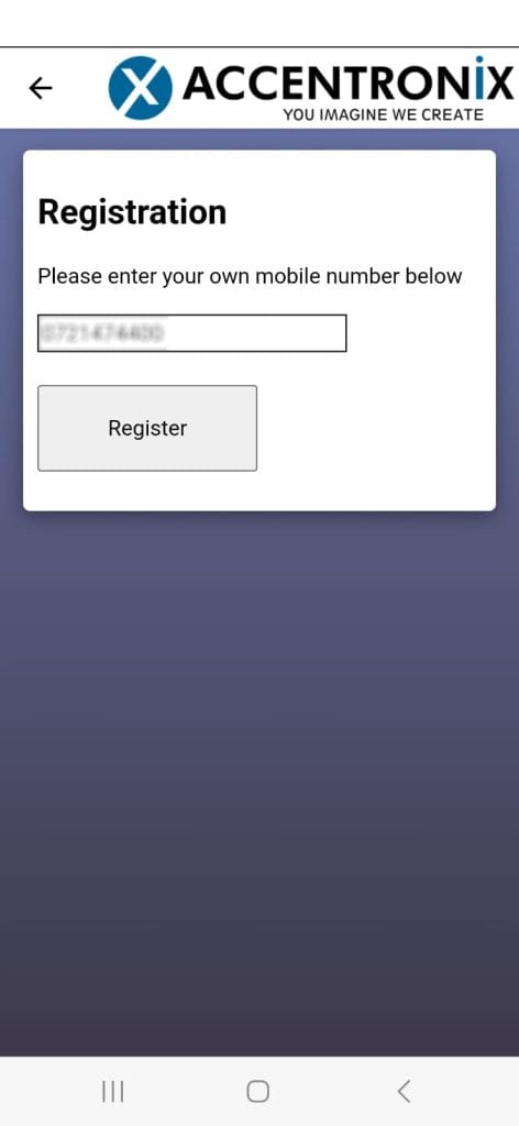 2. Enter your mobile number (You must register your number at the Body Corporate first). Then tap on Register and Verify your number.