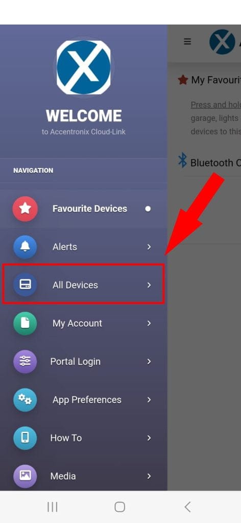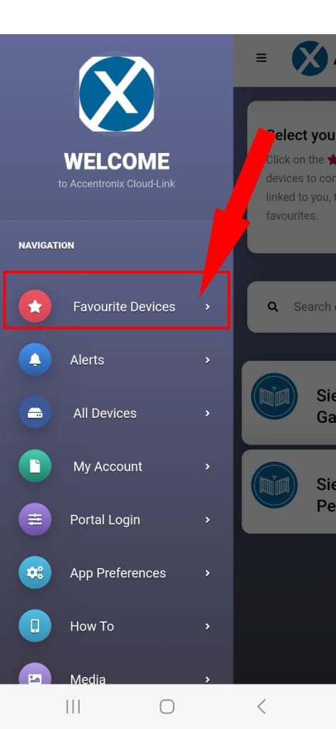 6. Go back to the hamburger menu and click on Favourite Devices.