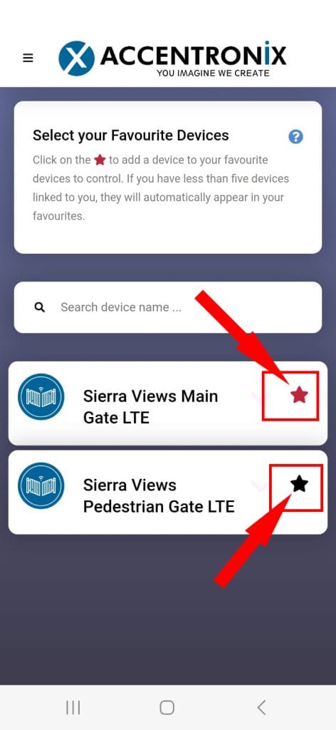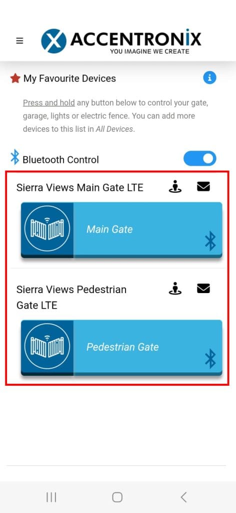 7. You will now see both gates on the My Favourite Devices screen and every time you launch the App.